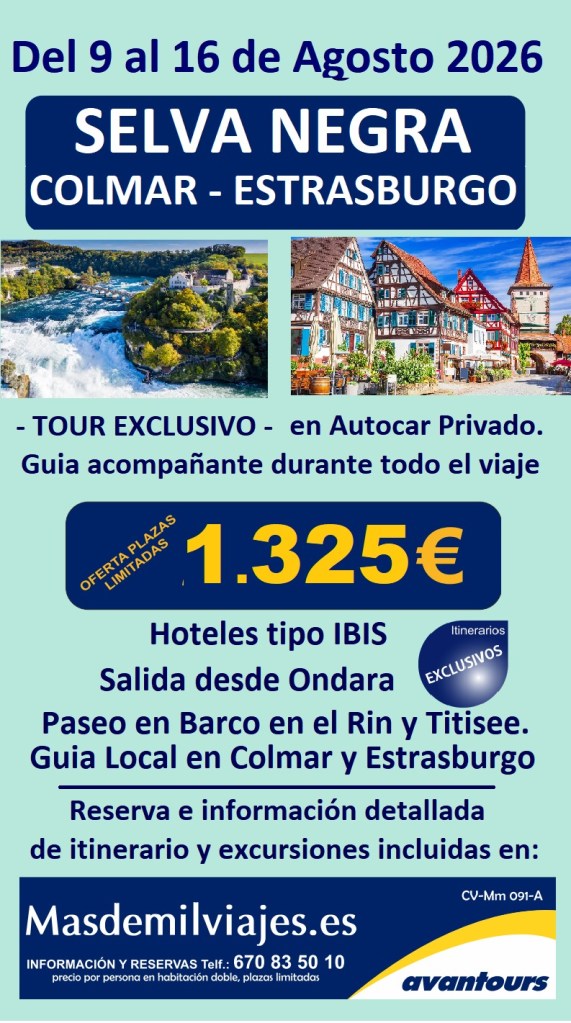 Cómo Reservar: Para reservar tu viaje a la Selva Negra, simplemente ponte en contacto al tlf. 670835010 (llamada o mensaje de Whatsapp) o visita nuestra agencia en Ondara. Estaremos encantados de brindarte más detalles y responder a tus preguntas.¡Esperamos que te unas a nosotros en esta aventura!