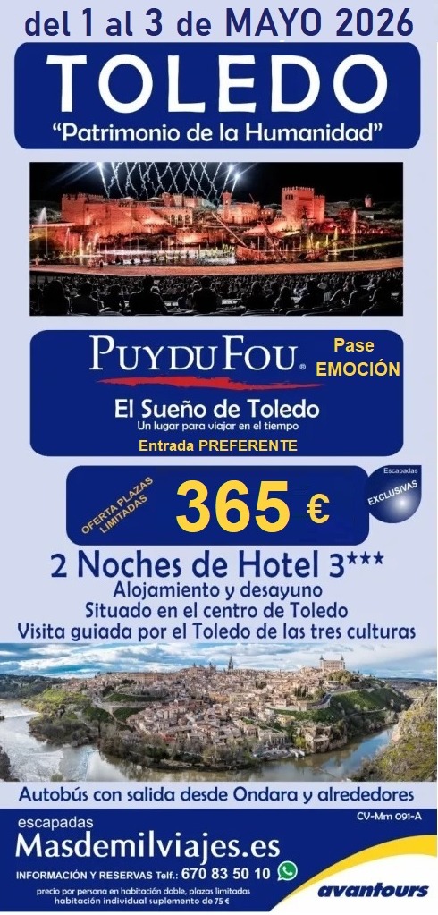 - Entrada incluida a Puy de Fou y Sueño de Toledo